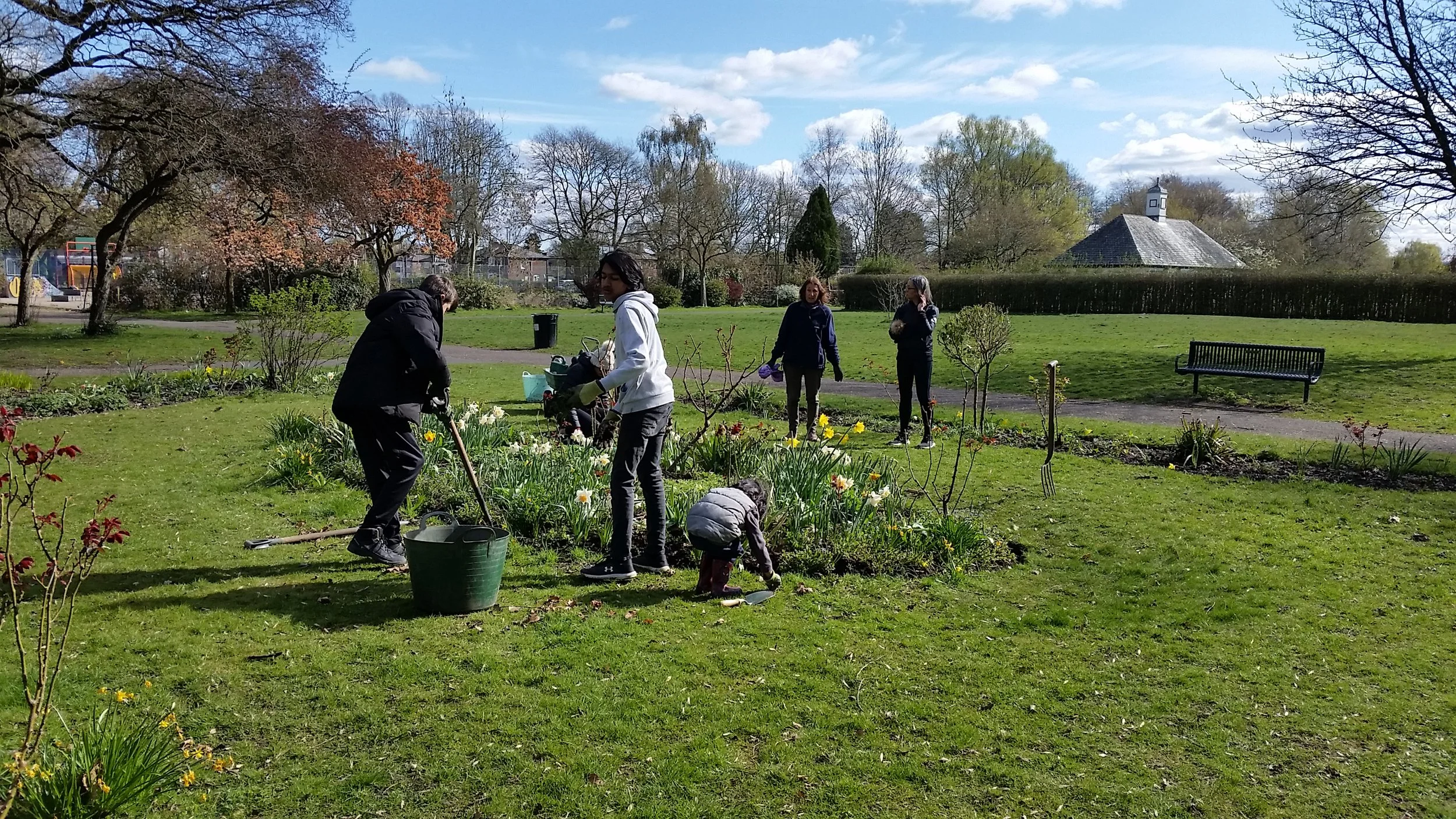 We borrow all the equipment from Keep Manchester Tidy, including gloves and litter picks for children, as well as adults. We hand out the equipment by the bike racks next to the cafe. You don't need to do the full two hours, even half an hour can make a big difference, so please come along and give us a hand.