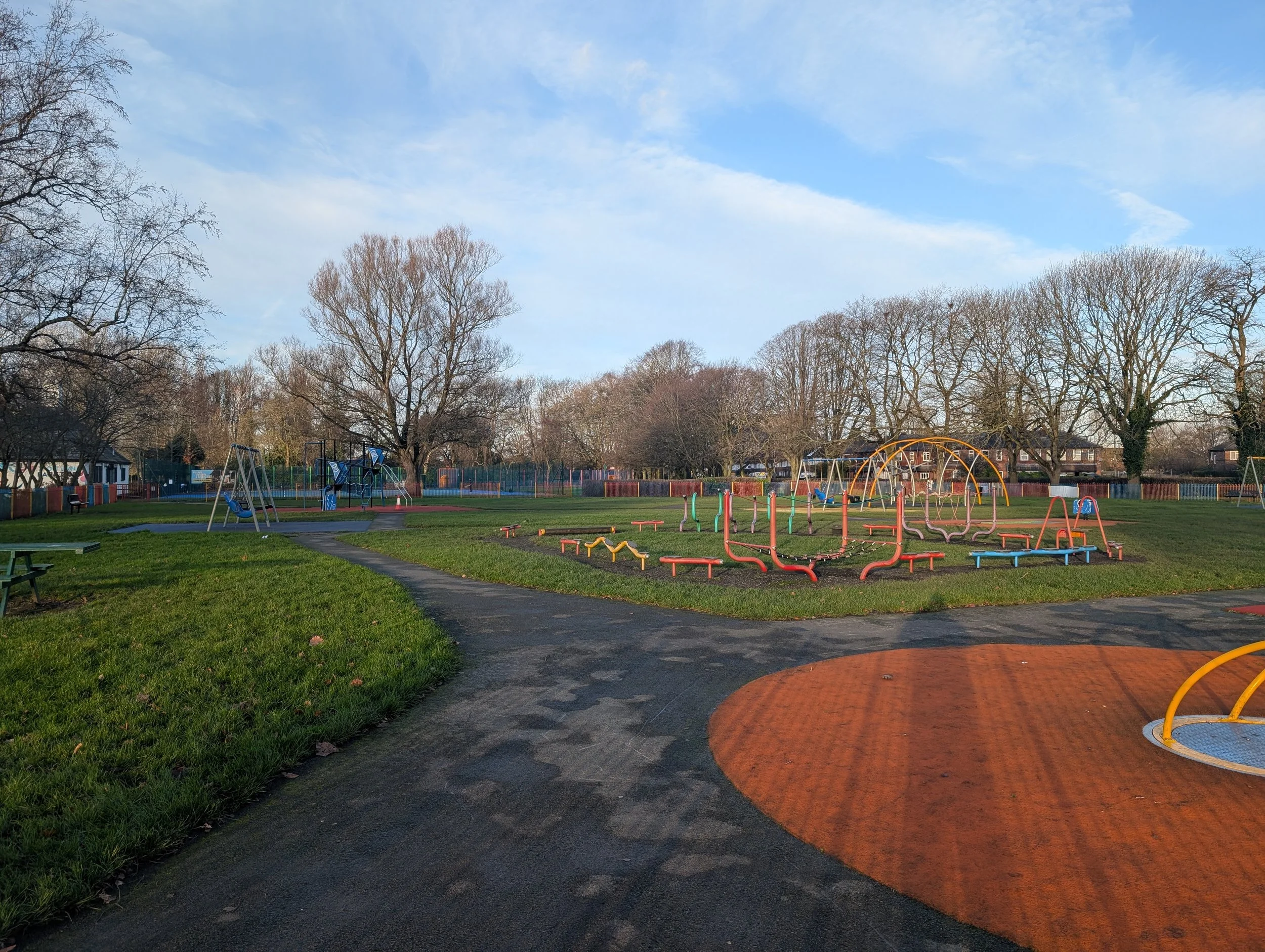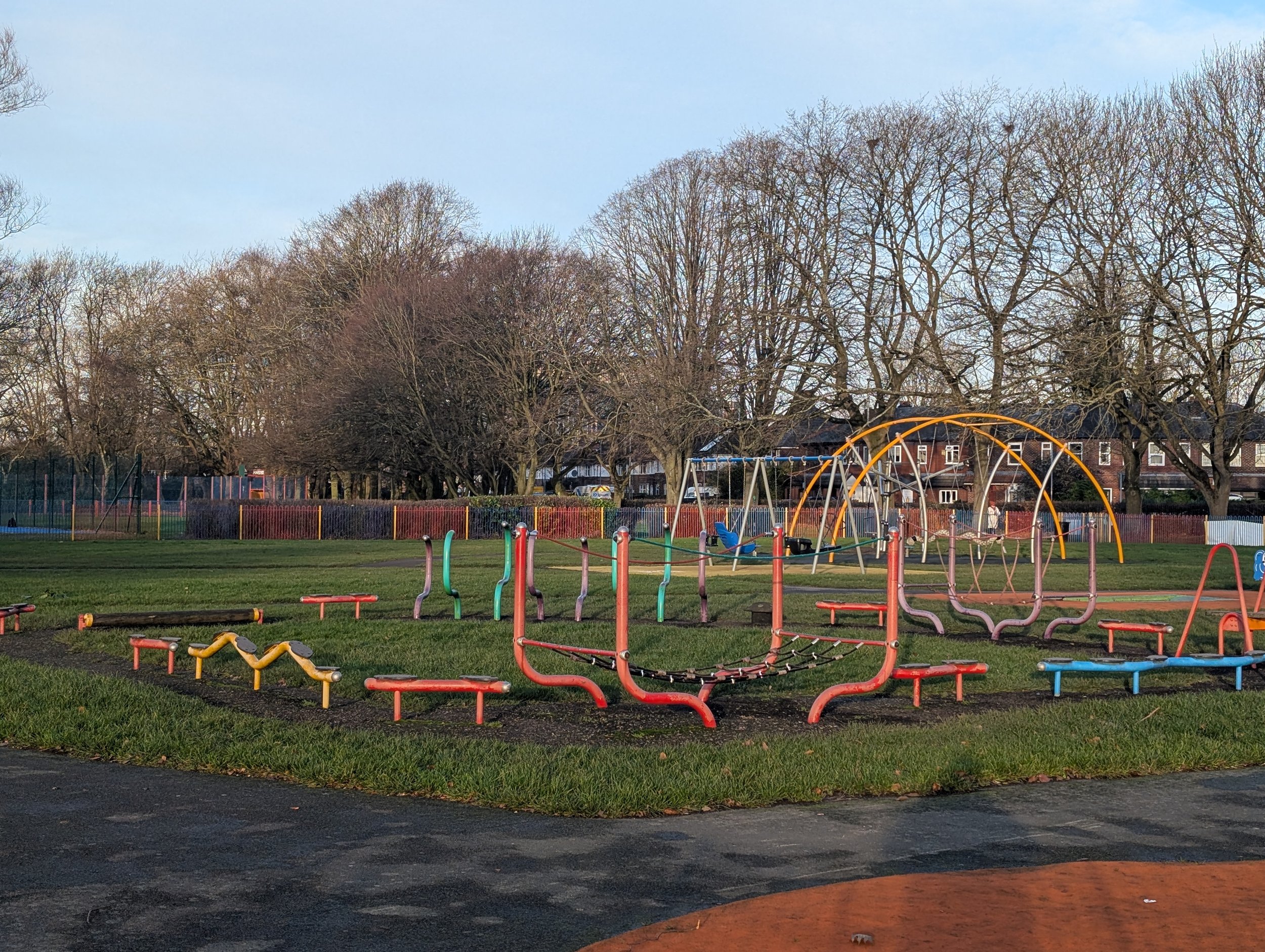 The children’s playground is suitable for all ages up to 12 years old. There is equipment for younger and older children, ranging from swings, slides, and climbing frames, to obstacle courses, ride on items, sensory boards, and picnic benches. Much of the playground equipment is new or has been refurbished thanks to a £80,000 grant from the Manchester City Council’s Neighbourhood Infrastructure Fund.