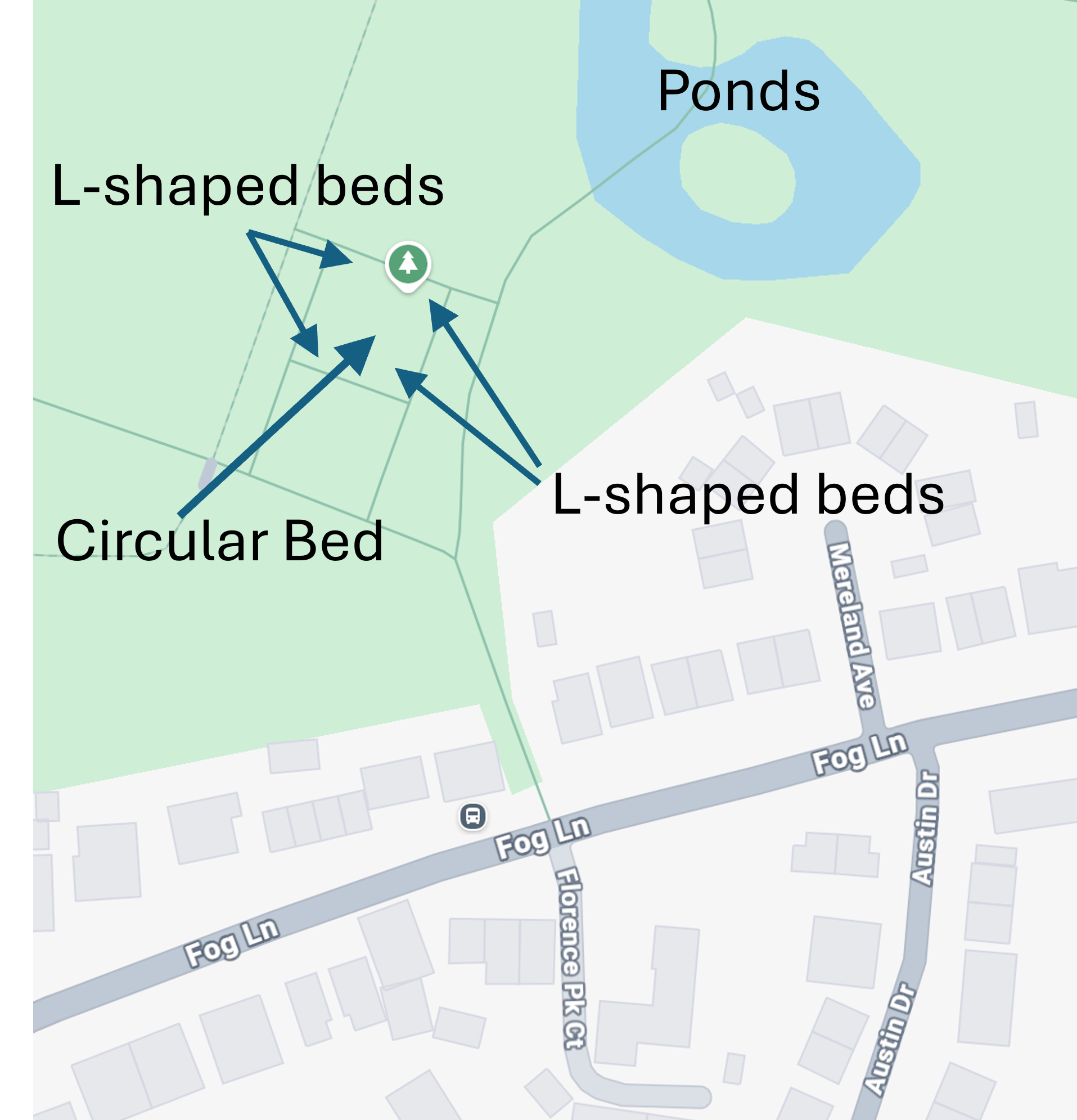 In 2025, the Gardening Group have decided to take over what used to be the wildflower bed near the Fog Lane entrance (this can be seen in the background of the photo of Nora below). This wildflower bed had been very attractive in the past, but required a huge amount of maintenance, which couldn’t be managed by our small gardening group of 6-8 volunteers. It was decided that this year, the central bed would be turned over to perennials and shrubs, similar to the other large bed at this end of the park. At the moment, the bed has been dug over and filled with 800 daffodil bulbs provided by Manchester Council, which should give a lovely show in the spring. Once they have finished flowering, the group intend to use more of the funds to fully plant the bed with shrubs and perennials which are attractive to butterflies and insects.