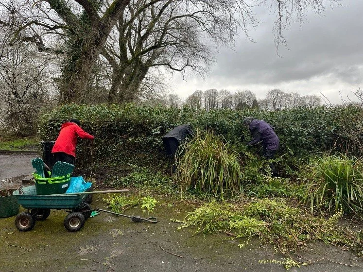 In 2024 Sue, a Gardening Group member, decided that it would be a good idea to restore one of the beds near to the pond, which was full of ivy and sedges. First of all, we had to remove all the plants.