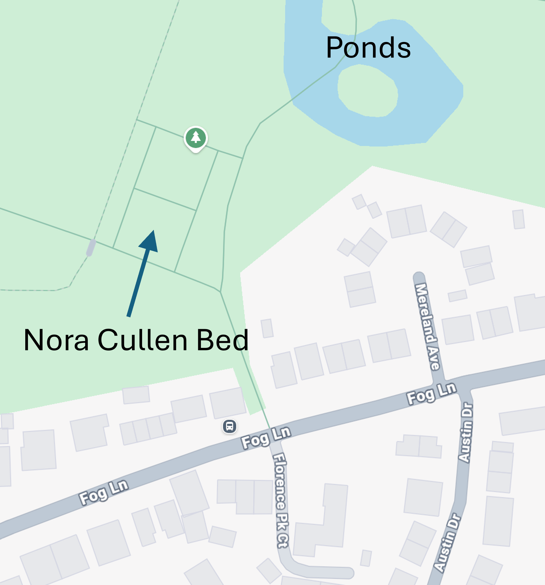 Back in April 2023, the Friends group received an email from Rose Cullen. She told us that her mother, Nora, had lived close to the park for over 50 years, during which time, she had greatly enjoyed visiting the park. Nora had recently died, and the family wanted to sponsor a bench in her memory and also raise money for ‘the flowering of Fog Lane Park’ through donations instead of flowers at the funeral.