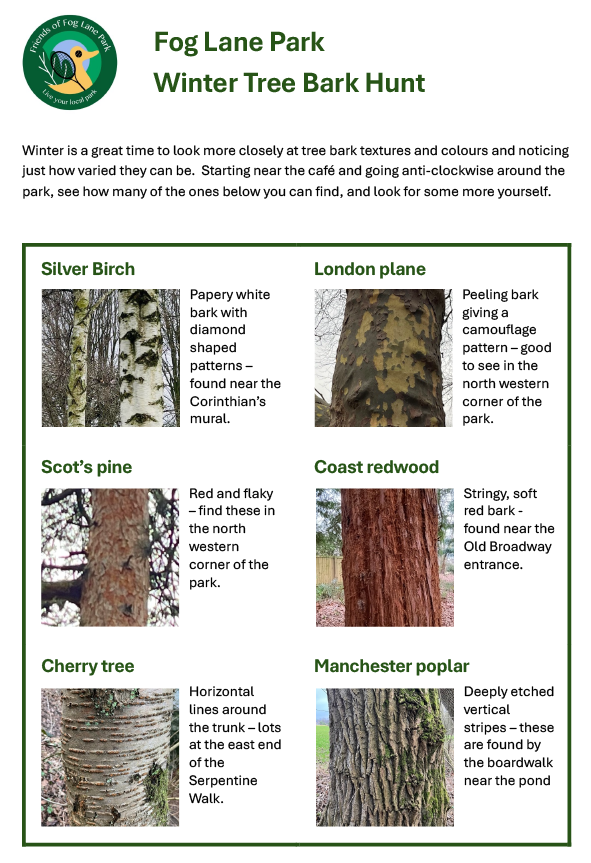 A fun tree-based activity designed by the Friends of Fog Lane Park