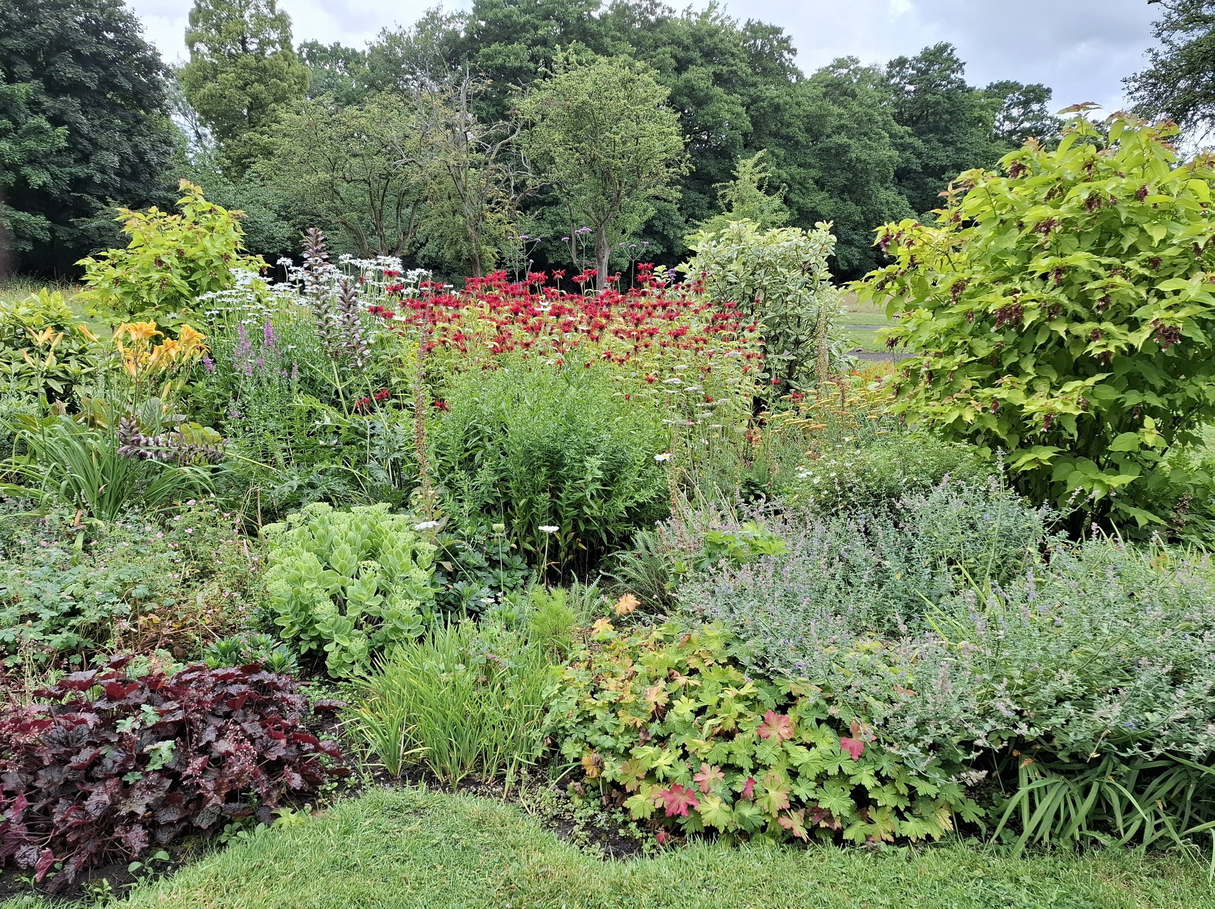Formal flower beds have always been a part of Fog Lane Park, as you can see from the photo on the left (circa 1962) of the flower beds near the Fog Lane entrance. The Fog Lane entrance flower beds are now maintained by the Gardening Group, who meet every Wednesday morning. As you can see from the other two photos below, the beds provide a vibrant mix of colour and foliage, creating an area of quiet contentment in which you can often see people reading, relaxing, or simply watching the sun set over the meadow and Tiger Wood.