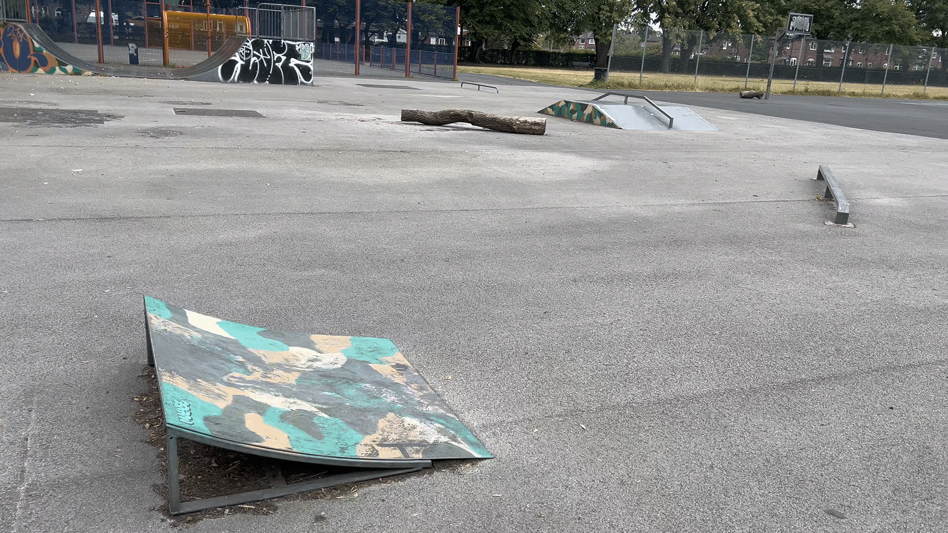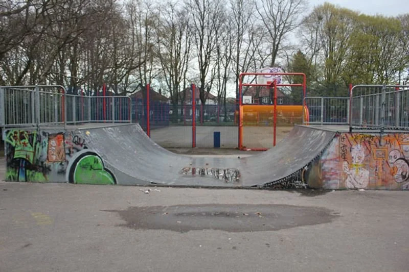 The skatepark is one of the most established features of the multi-activity play area of the park. It has a number of obstacles ranging from low rails to the metal half-pipe.