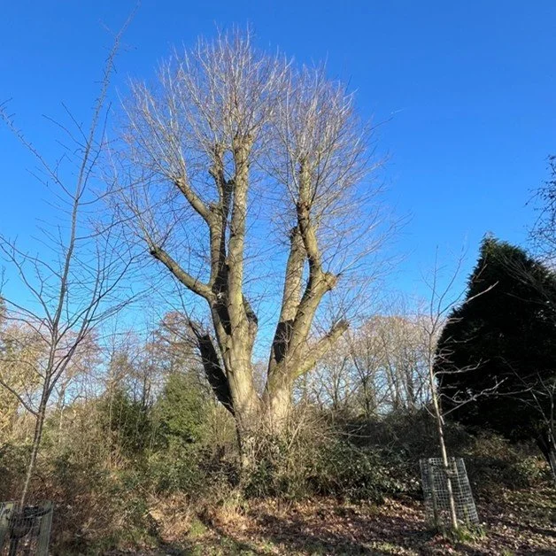 Silver birch trees are dotted around the park with a cluster near the Corinthians mural and a number planted along the Parrs Wood Road boundary. They are one of the easiest trees to identify in winter from their distinctive silvery white papery bark that develops diamond shaped fissures in older trees. This native tree is sometimes used as a symbol of renewal and purity.
